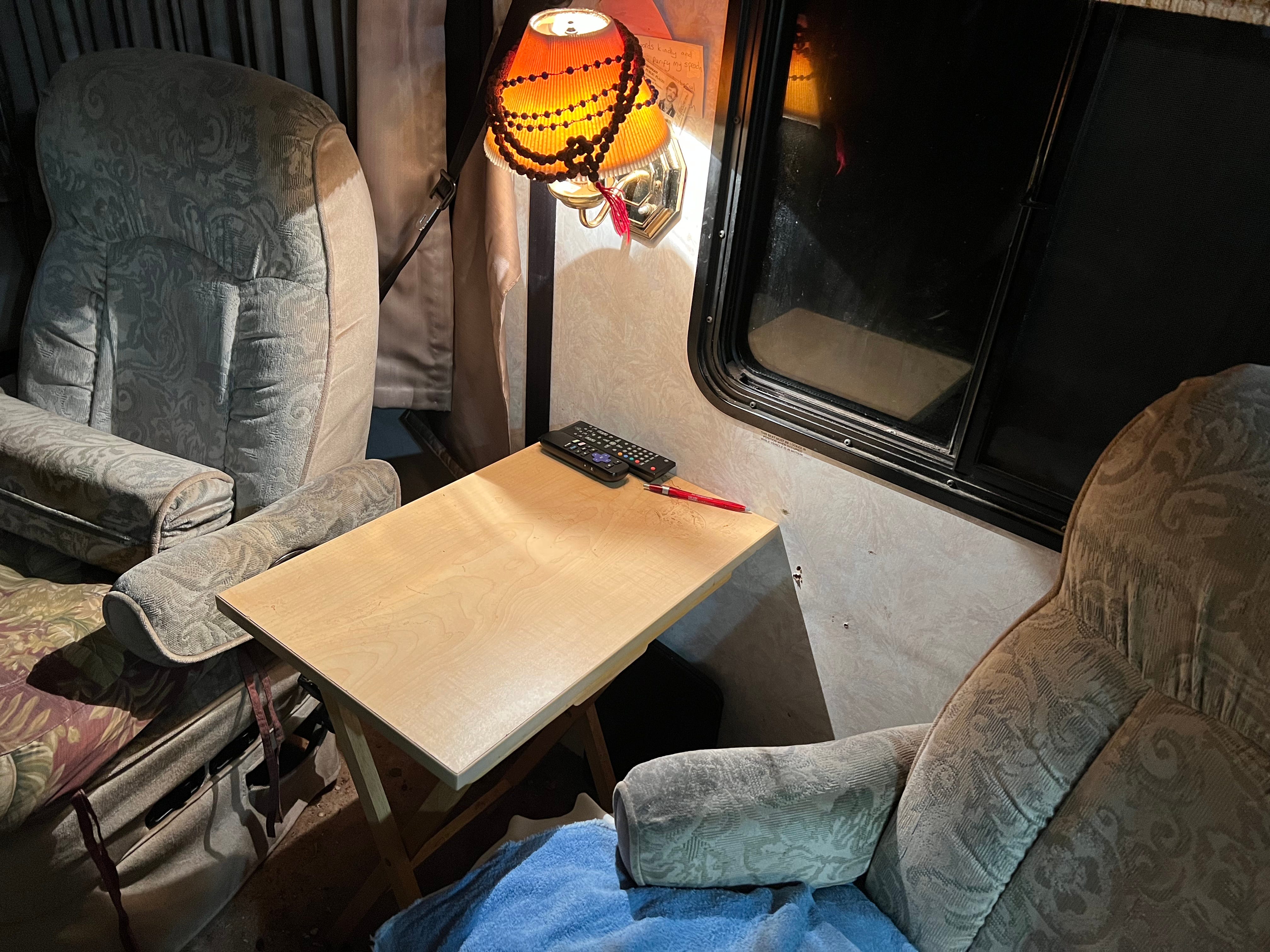 I removed the old dinette table and saw that a desk could be created if we had the right top.